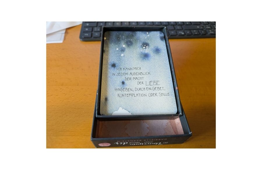 Dazu passt – oh Wunder! – auch meine aktuelle Motivationskarte aus dem sehr schönen Deck Gabrielle Bernstein: „Das Universum steht hinter dir“.