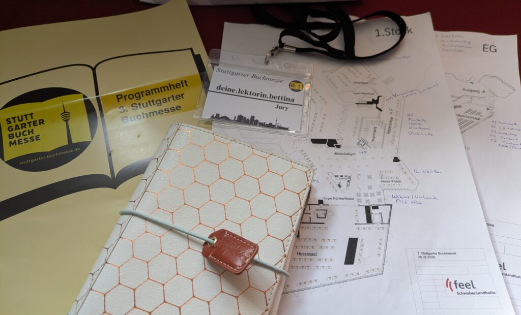 Endlich hat es geklappt: Nachdem ich bei der 1. und der 2. Stuttgarter Buchmesse nicht dabeisein konnte, habe ich am 28. März 2026 den Messetag in der Fellbacher Schabenlandhalle in vollen Zügen genossen. Als Jurymitglied für den Stuttgarter Buchpreis durfte ich an der Warteschlange am Eingang vorbeigehen und war noch vor 10 Uhr im Gebäude. Als ich neun Stunden später wieder nach Hause fuhr, war ich glücklich und erfüllt. Was für eine tolle Veranstaltung – und das quasi vor meiner Haustür!